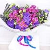 Букет "Лиловое настроение" - это букет из фиолетовой хризантемы и фиолетовой эустомы, который оформлен в упаковку с полосатым принтом. Фиолетовый цвет символизирует мудрость и духовность, этот букет создает ощущение тишины и гармонии. Он идеально подходит для любого случая, будь то день рождения, свадьба или просто для того, чтобы подарить радость близкому человеку. Яркий дизайн и оригинальное оформление не оставит равнодушным даже самого требовательного получателя.